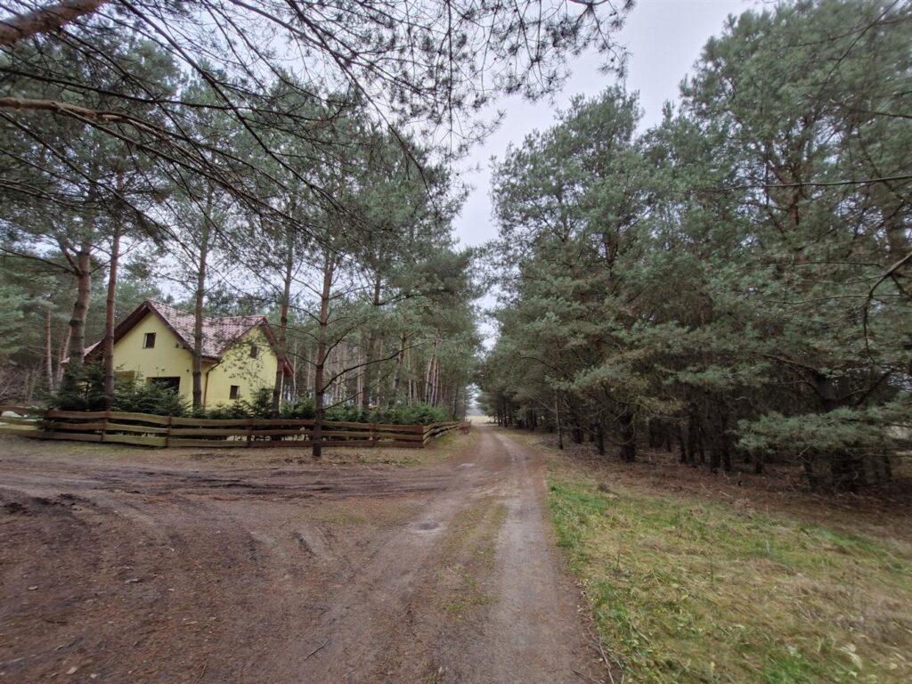 W sąsiedztwie zabudowa letniskowa, dojazd drogą gruntową, 400 m w linii prostej do jeziora Chłop.