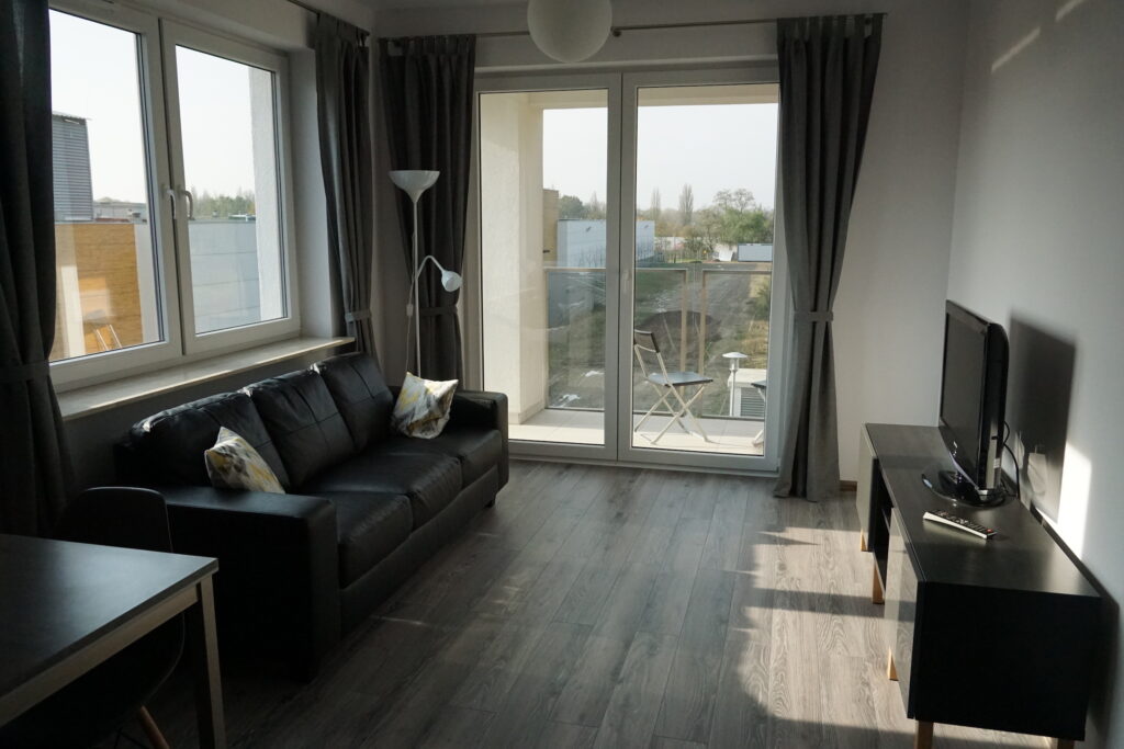 Apartament idealny dla osób pracujących, którym zależy na bliskości do centrum miasta a jednocześnie szukają mieszkania w pobliżu terenów zielonych.